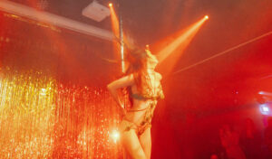 Een klassieke burlesque-act, vol ondeugende wendingen, die uitmondt in een zinderende “Champagne Shower”!